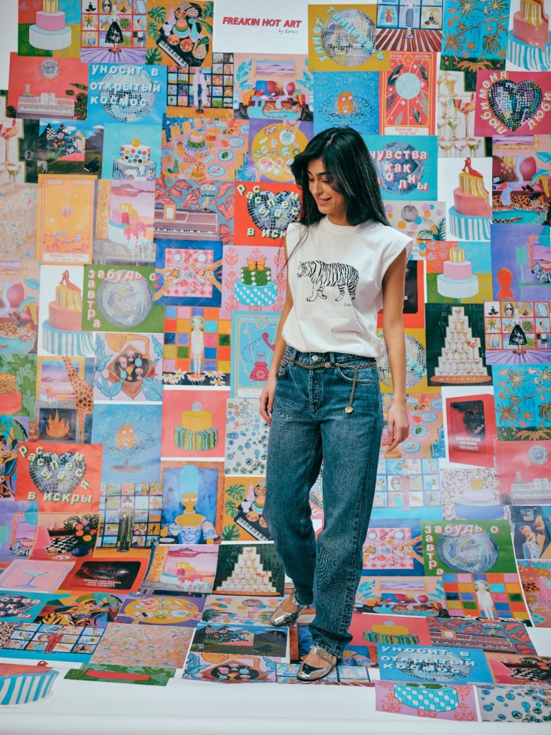 Entro i corpi, simboliche macchie e fili attraversano lo spazio interno creando un armonico, energico, fluidissimo esprit vitale. I profili sembrano sprofondare o uscire fuori dai colori indefiniti e al contempo evocativi. La sapienza dell’uso delle gamme cromatiche non è data da virtuosismi tecnici, bensì sembra fuoriuscire da retaggi accademici, superati e riproposti sotto sfumature diverse. “Per me il colore è un linguaggio capace di parlare dell’invisibile: degli stati sottili dell’anima, dei sogni, della ricerca dell’equilibrio tra il mondo interiore e quello esteriore. Le tonalità brillanti dei miei dipinti risvegliano i sentimenti, ricordandoci la bellezza di ogni momento e l’importanza di vedere la luce anche nelle cose più ordinarie”, sottolinea Katrin Zak. I suoi esordi sono concentrati e rivolti alla reinterpretazione della prima Pop Art: marchi e simboli della cultura mediatica sono integrati nel panorama delle sue opere. “La personalizzazione è sostituita da capi di abbigliamento, circostanze e luoghi che una persona sceglie per posizionarsi nel mondo. “Il processo di autoidentificazione è diretto all’esterno, dove una persona è uguale a ciò che indossa, a come organizza lo spazio intorno a sé, a quali emozioni traduce nel mondo e a quale sentimento si lascia alle spalle. Proseguendo la sua ricerca sull’umanità, Katrin Zak approfondisce il tema dell’armonia e della disarmonia della personalità. Si riferisce al concetto di “noosfera” proposto dagli scienziati francesi, secondo cui una persona, grazie alla propria mente, influenza lo sviluppo del mondo e della natura in particolare, e la sua attività diventa un fattore chiave in tutti i cambiamenti”.
