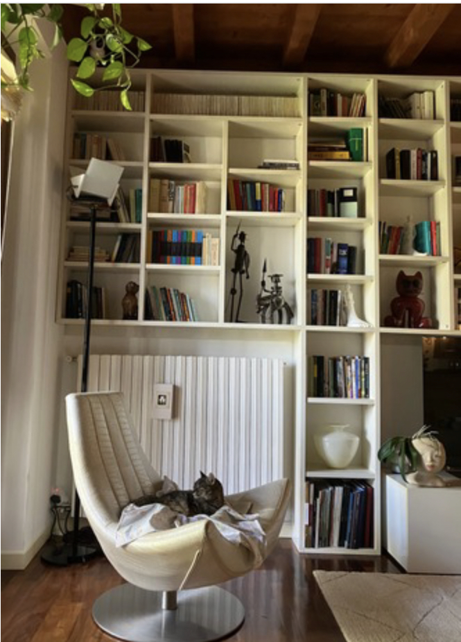 Un giudizio sui suoi libri? “Mi piace definirli storie di intrattenimento che regalano piacevoli momenti di relax, coinvolgendo il lettore pagina dopo pagina, attraverso temi sociali attuali, introspezioni, descrizioni di paesaggi e sentimenti, con forza e a volte anche con un pizzico d’ironia. E la sua casa? È la stessa scrittrice a descrivercela: ”Ho cambiato parecchie dimore e ho una passione esagerata per il mondo dell’interior design. Sentirsi a casa è fondamentale, rassicurante e necessario. Tutti al di là del fatto che si tratti di una casa bella o meno belladovrebbero sentirsi abbracciati dalla propria casa! Un mondo intimo come quello della psiche, un luogo dove depositare ogni giorno le fatiche e le gioie che la vita ci riserva. Tutte le case che ho cambiato, per esigenze varie, nel corso della vita le ho sempre curate personalmente. Quest’ultima è calda e avvolgente, con tanti piccoli angoli suggestivi creati con pezzi di design o mobili vecchi recuperati e sistemati da me. Ogni oggetto un significato, un ricordo, una trasformazione. E non manca un piccolo giardino con una fontana zampillante che con il suo gorgoglio mi fa compagnia mentre scrivo o leggo, anche qui affiancata dai meravigliosi felini che non mi abbandonano mai. Il mio studio è la stanza della creatività. Rappresenta un po’ il mio regno, il mio mondo, quello dove le mie storie passano dalla fantasia alle pagine scritte. La mia scrivania (anch’essa trasformata da me) ha un grande piano di cristallo, oltre il computer fogli con appunti e memorie, un brucia essenze e stilografiche (una piccola collezione), biro e matite di ogni genere; sul muro di fronte un grande e vecchio specchio anch’esso ringiovanito dai miei momenti di bricolage mi permette di spaziare nella stanza e sentirmi avvolta da ciò che mi sta attorno in ogni momento come fosse un piccolo cosmo dove sensazioni ed emozioni nascono, si incontrano e si scontrano in un vortice di idee in cui la fantasia diventa realtà e la realtà fantasia.”