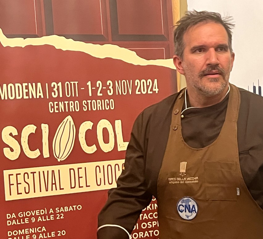Il maestro cioccolatiere Mirco Della Vecchia è conteso da convegni e tv ma ogni anno si prende del tempo per realizzare un’opera distintiva per Modena. Nel 2023 quella di Vasco Rossi, che è rimbalzata mediaticamente in tutto il mondo, ha richiesto 15 giorni (e notti) di lavoro. “Anche quest’anno si rinnova quella che io chiamo l’impresa di Modena, eh sì perché ogni anno il tasso di difficoltà che rappresenta la scultura che dedichiamo a Sciocola’ e alla sua Città è davvero tra i più alti. – spiega Mirco Della Vecchia – Quest’anno abbiamo pensato di sposare due eccellenze culinarie come il cioccolato fondente al 60% di origine Messicana raffigurando il più grande interprete della cucina Italiana e senza troppi forse mondiale Massimo Bottura. Non abbiamo voluto dire niente fino ad oggi perché volevamo fosse davvero una sorpresa anche per l’interessato, e anche perché le tante piogge hanno reso l’ambiente di lavoro molto umido che crea diverse problematiche lavorative al nostro cioccolato. Diciamo che oggi possiamo ufficializzare che ci stiamo riuscendo, ma ancora il lavoro che ci aspetta nei prossimi giorni sarà serrato. Speriamo che lo chef possa essere entusiasta quanto noi di essere raffigurato con uno degli ingredienti più nobili della gastronomia, il cioccolato”.