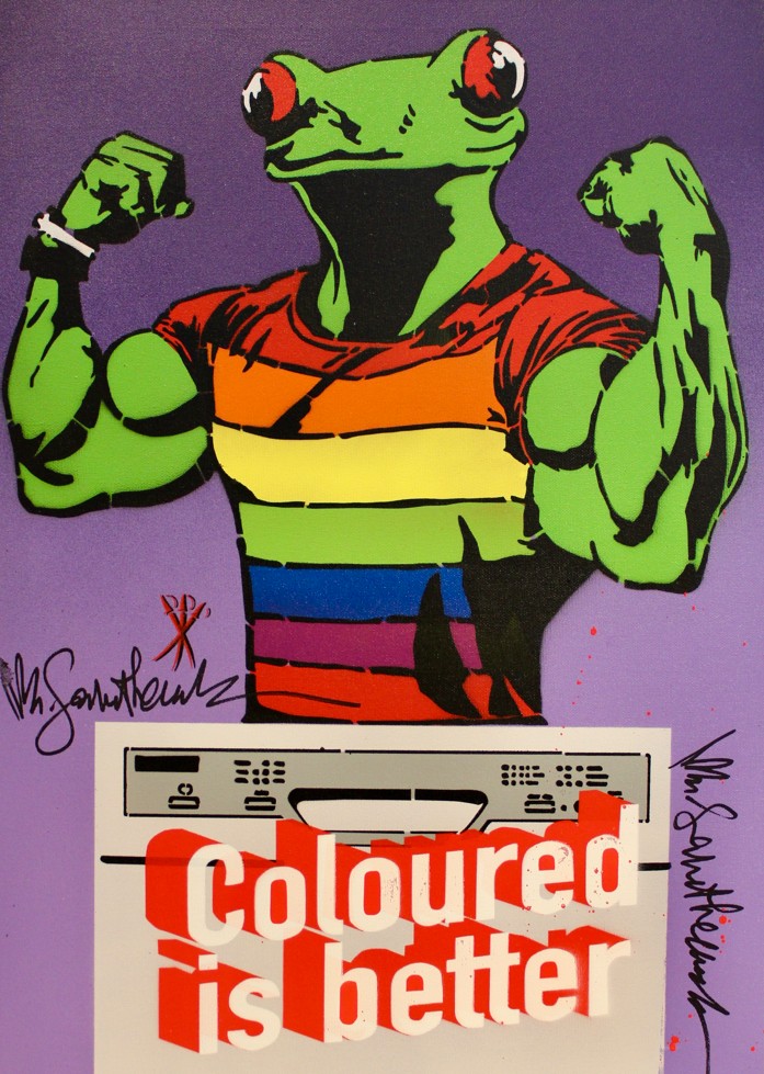 Coloured is Better è un nuovo progetto artistico svelato in una serata molto partecipata a Milano nella sede della foresteria IDNTT, società di comunicazione. Il risultato del processo creativo ha portato alla reinterpretazione in chiave inclusiva del claim di uno spot pubblicitario (creato 25 anni fa dalla creatività di Aldo Biasi) grazie al contributo dell’artista Mr. Savethewall, street artist noto per il suo tratto irriverente e anticonformista.