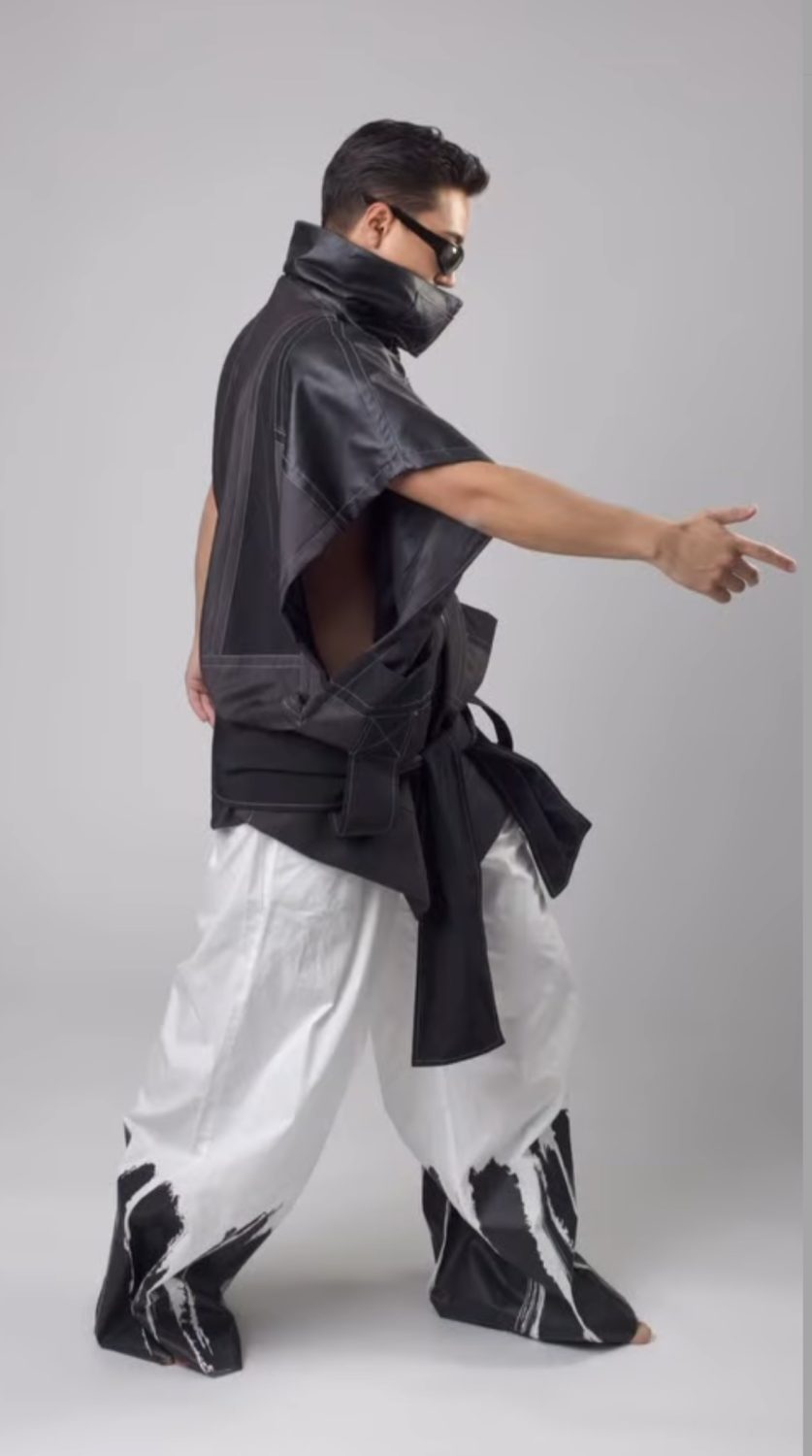 Foto dal servizio fotografico di Gianluca Chiarello. Norman Montini indossa capi Grinko Milan stagione 2025.
