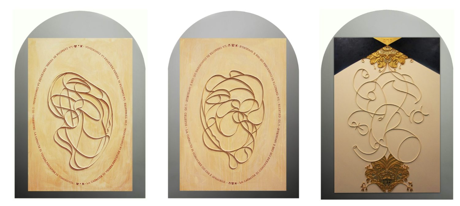 Sono nato in una famiglia molto cattolica, quindi sono cresciuto ascoltando i concetti della Chiesa, sentivo la necessità di rappresentare la visione autentica della Bibbia e non filtrata. Per secoli la società e la Chiesa hanno interpretato letteralmente la Genesi, ma l’evoluzione dell’uomo arriva da molto altro. Ho trovato molte risposte, per capire quei testi bisogna capire molto l’ebraico antico. Ecco perché nei miei quadri riprendo quelle scritte.
