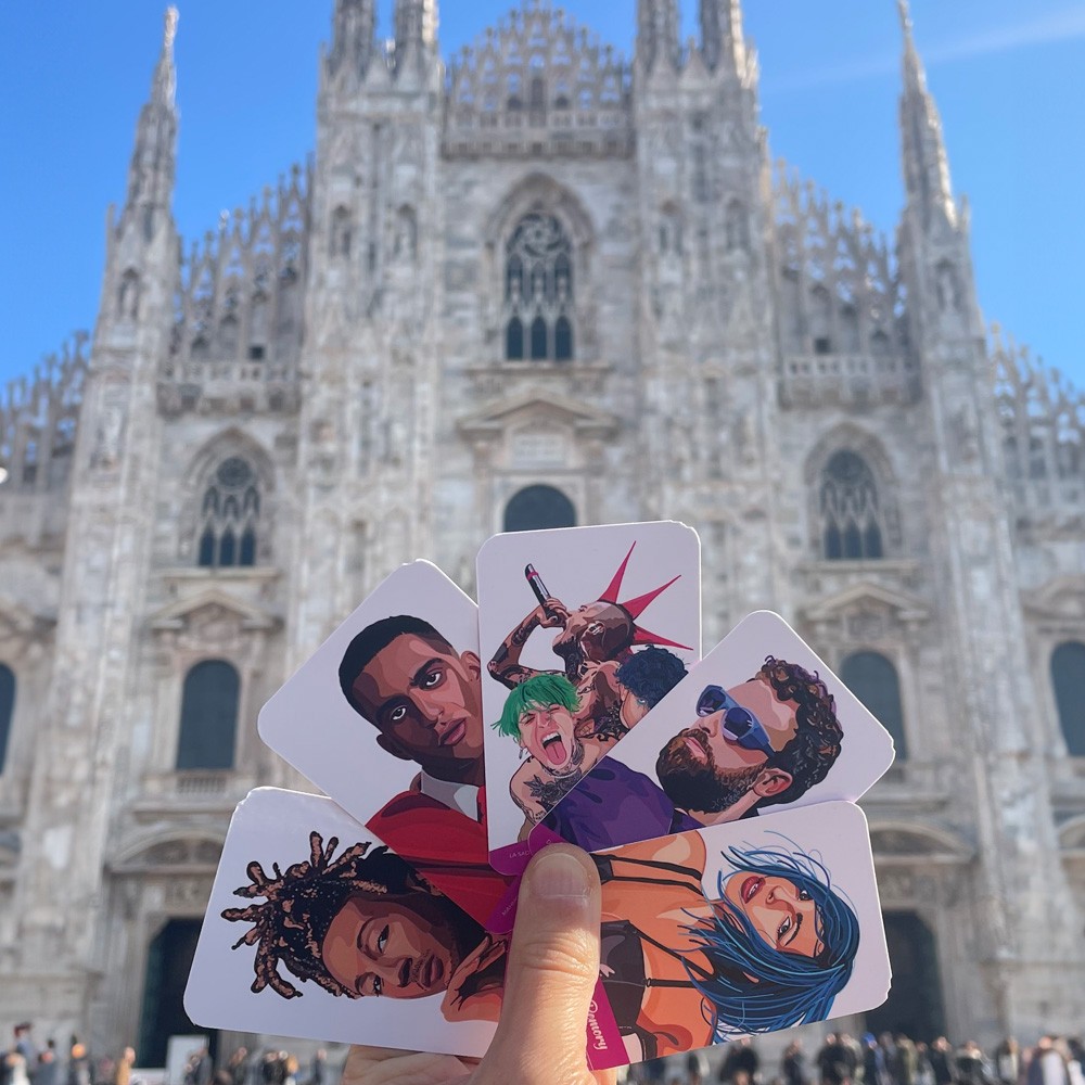 Trasformare in gadget fisici le sue fantasiose grafiche è l’intuizione che ha portato al successo Simon TheGraphic. Il creativo milanese (di cui vi abbiamo presentato il lavoro qui) oggi è al lavoro per il prossimo Festival di Sanremo 2025 con lo stesso intento dei suoi inizi: la grafica usata come forma d’arte e memoria. Forte del successo di alcune mostre d’arte nei locali pubblici di NoLo a Milano, Simone Dell’Aglio, vero nome di Simon TheGraphic, è oggi protagonista del lancio di una serie di carte da gioco che raffigurano gli artisti in gara al festival della canzone italiana. Si chiamano “Sanremory – Festival Card”, un progetto che porta avanti dal 2022.