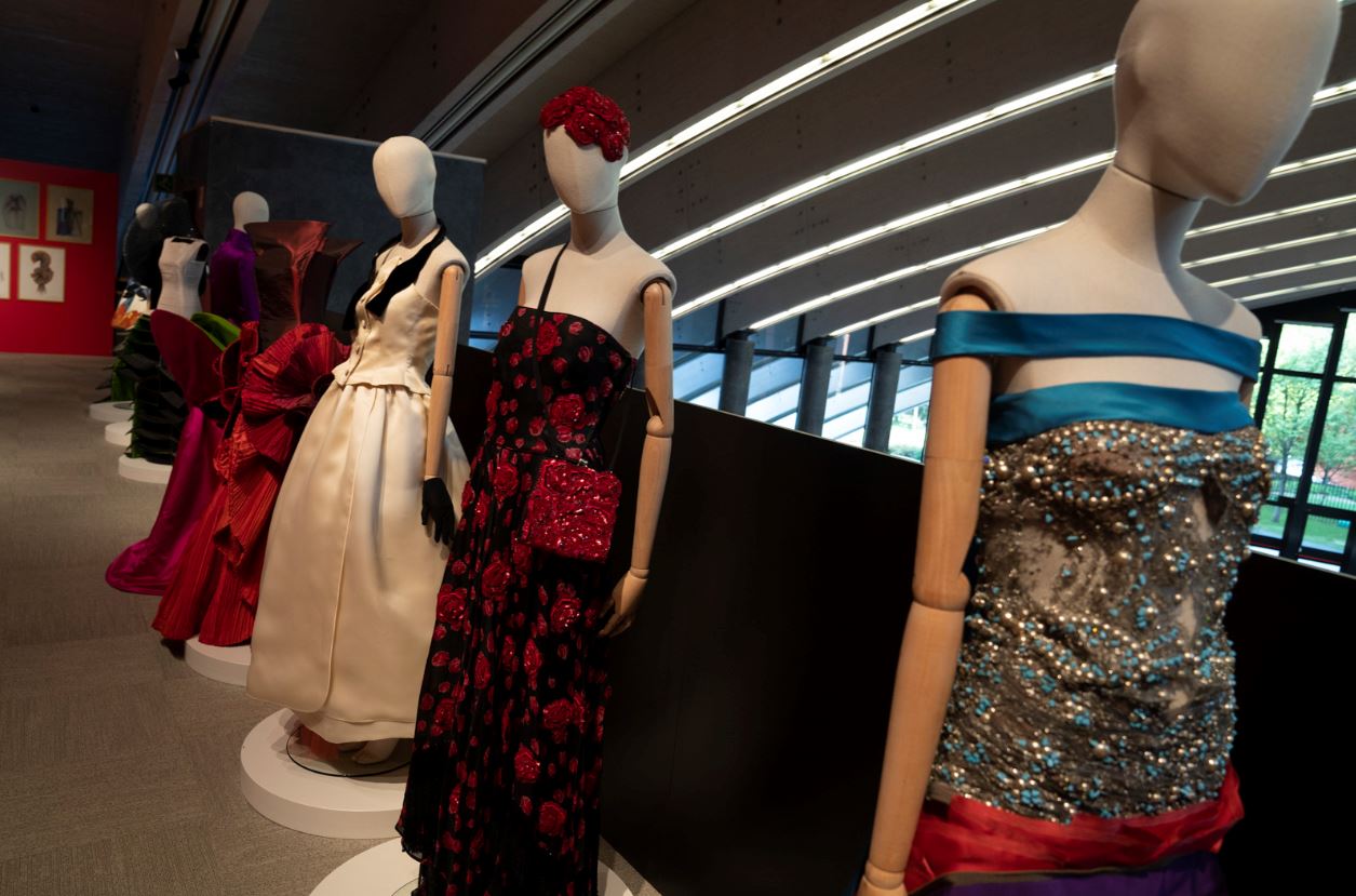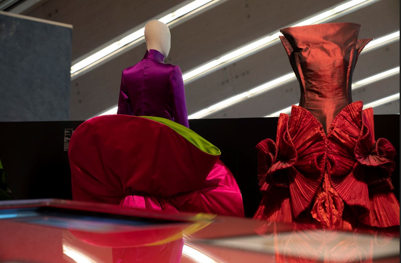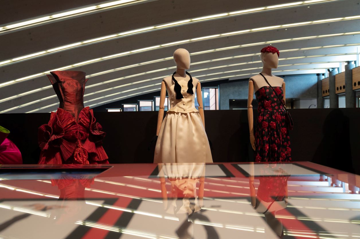 L’allestimento presenta, attraverso cortocircuiti cronologici, manifesti della Belle Époque, bozzetti e abiti di Giorgio Armani, lavori pubblicitari Campari in pieno stile Sixties, un abito e accessori della linea “Balmoda” di Laura Biagiotti, omaggio al maestro futurista Giacomo Balla; e ancora, la moda di Raffaella Curiel, che nel 1986 è stata ispirata ai disegni di Fortunato Depero per Campari e infine capi vintage di grandi stilisti in prestito da A.N.G.E.L.O. Vintage Archive. La mostra rimarca anche lo storico legame tra Campari e il mondo del cinema, raccontato attraverso molti dei progetti in mostra: dai bozzetti pubblicitari che Franz Marangolo realizza per Campari negli anni Sessanta, veri omaggi ispirati alle figure di Brigitte Bardot e Audrey Hepburn raffigurate in pieno stile dell’epoca; alle eleganti fotografie di Giovanni Gastel, in cui si palesano le vicinanze tra cinema e moda; fino alle copertine di riviste fashion (Vogue, W Magazine, Vanity Fair) rivisitate in chiave pop da Ana Strumpf: nelle rielaborazioni coloratissime della designer brasiliana compaiono, tra le altre, Audrey Hepburn e Tilda Swinton.