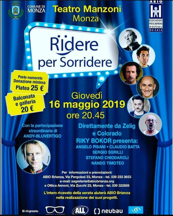 Il 2 maggio lo stesso spettacolo sarà protagonista allo Street Bier Fest di Spirano, in provincia di Bergamo. Anche qui lo scopo benefico: ANDY – Bluvertigo sarà testimonial del progetto solidale VACANZE SENZA BARRIERE a cura di Itaca cooperativa sociale. Il nobile scopo, orientato a una raccolta fondi durante le serate di Street Bier Fest 2019, è quello di promuovere il tempo libero delle persone affette da disabilità dei centri diurni della Cooperativa Itaca in tutta la provincia di Bergamo.