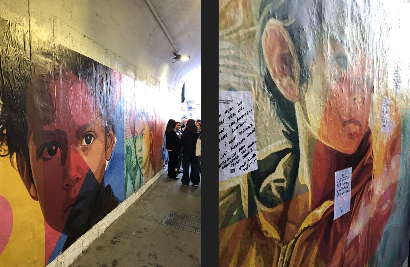 L’artista ha realizzato un opera multicolore ispirandosi all’infanzia, che è collocata lungo i muri dei passaggi pedonali del tunnel ferroviario di Via Padova. La commissione artistica fa parte del contest VIAPADOVAMONDO che è un progetto del Patto di Collaborazione Tunnel_boulevard_.