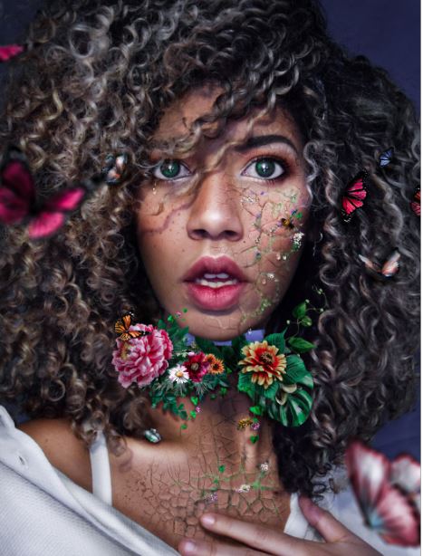 Per apportare una modifica, per prima cosa faccio uno schizzo dell’idea che ho. Poi comincio a cercare su Internet immagini che potrebbero adattarsi a questa idea e quando sono abbastanza contenta di quello che ho trovato, mi scatto delle foto per metterle in modifica. Naturalmente, scelgo i vestiti perfetti che potrebbero abbinarsi all’universo del montaggio e mi trucco prima. Poi mi scatto diverse foto con un telecomando per poter avere tutto il mio corpo nell’inquadratura. Posso anche scattare foto di oggetti che ho se sono rivelatori, e questo dà al pezzo finale un tocco davvero unico. Quando sono soddisfatta dello scatto, scelgo una o più immagini e il processo di Photoshop può iniziare.