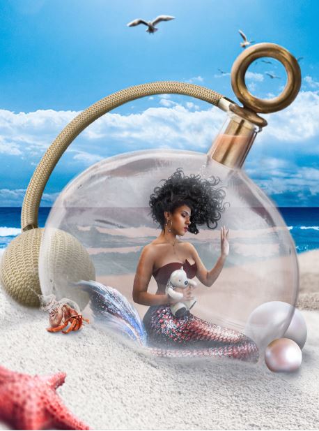 My influences are quite multiple. I can be inspired by videogames, books, series or even just a object that is attractive for me. I love to mix my love for fantastic and dreamy universes with a kind of vintage touch, and we can feel it in the background that I can use or the clothes that I wear. And of course, I also do some references to my life, where I come from. For exemple, I designed a mermaid in a perfum bottle on a beach in reference to the landscapes of Saint-Martin, the island I come from, or I use parisian’s appartments as backgrounds to show Paris, a city where I lived during 7years.