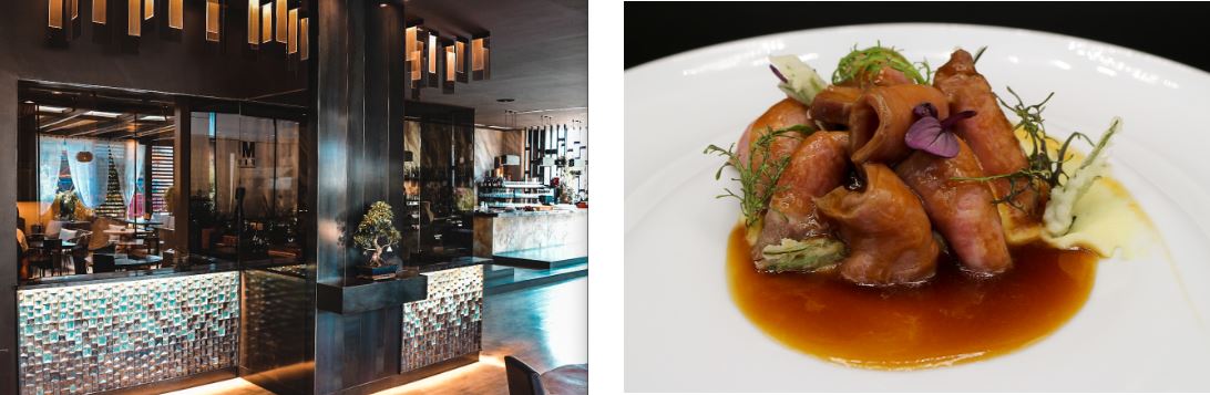 Nell’ottica di questo cambiamento anche il design del locale è stato rinnovato. La cucina a vista, già protagonista dell’ambiente MU, ora è ancora più valorizzata dall’aggiunta di piastrelle azzurre a rilievo, che risaltano attraverso i fasci di luce dall’alto. Mentre la rifrangenza del vetro amplifica ulteriormente lo spazio, grazie a un gioco di specchi.