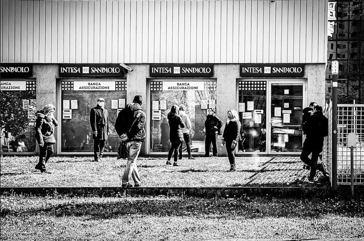 È un modo per vedere come ci ha trasfigurati, trasformandoci in chi non siamo mai stati. Non solo dunque una descrizione fotografica e narrativa dello spazio che narra con i suoi vuoti la nostra realtà, ma i pensieri di uomini, donne, giovani e anziani, con le loro file ai supermercati e le loro mascherine.