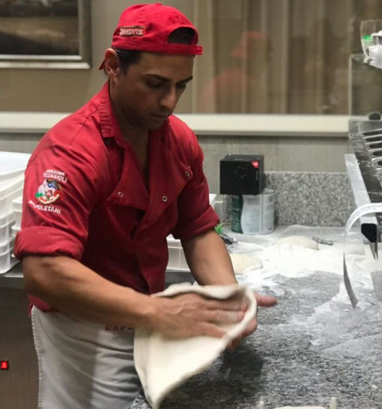 Per un anno ho osservato solo la cottura col forno a legna. Prima di essere un bravo pizzaiolo, devi essere un bravissimo fornaio. All’inizio, facevo tutta la linea di pizzeria, tagliavo gli ingredienti e iniziavo ad allenarmi per la stesura, la pizza napoletana ha una sua stesura che non si può improvvisare. Poi mi sono dedicato agli impasti. Rino mi disse un giorno: sei pronto, puoi andare.