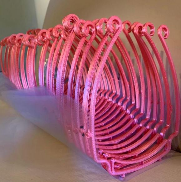 Come vedete dalle foto che ci ha fornito Fabrizio, lo “scudo” è fatto di un cerchio e di un elemento che cade sulla faccia in materiale trasparente. “Per l’emergenza, stiamo utilizzando le stampanti 3D di quelle che si auto-assemblano, quindi non certificate, e come protezione abbiamo usato i lucidi che si trovavano ancora nelle rimanenze dalle cartolerie”.