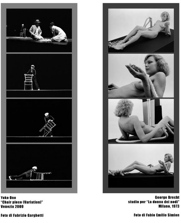 Nel periodo di fermento dagli anni ‘70 ad oggi, sulla scena internazionale, nacquero movimenti d’avanguardia, gruppi, festival, spazi deputati e situazionismi anticonvenzionali – Milano Poesia, il Living Theatre, Domus Jani, Out Off, il Fluxus – che hanno avuto influenze sulle generazioni successive. Anche se ridotti semplicisticamente nel calderone comune delle “avanguardie” artisti come George Brecht fotografato da Emilio Simion o la stessa Yoko Ono, che da prima di conoscere John Lennon già faceva performance art, hanno definito un’epoca.