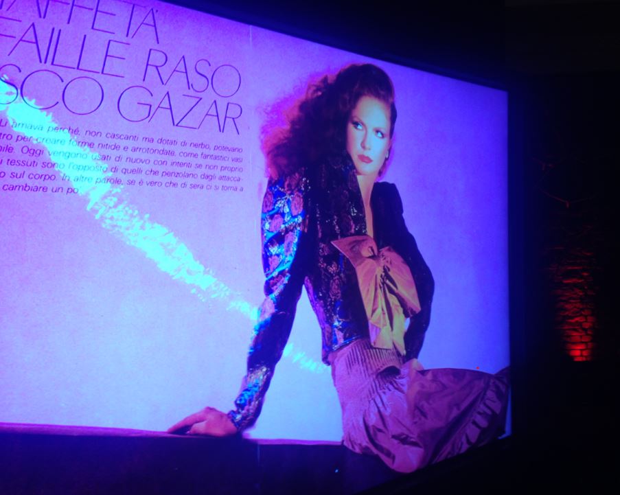 Gli ospiti della serata inaugurale erano tutti in quello che chiamavano “loft” con un bellissimo giardino d’inverno. Il famoso fotografo lì ha custodito gli oggetti che hanno reso celebre la ua arte: le ispirazioni dall’immensa collezione di riviste d’epoca, arredi ai confini dell’etno, ricordi di viaggi disseminati ovunque. E alcuni schermi dove vanno a loop le immagini iconiche della sua carriera. Lì lavora ancora Barbieri, e chissà che la sua straordinaria carriera, iniziata proprio quando il made in Italy si stava facendo strada nel mondo, aveva bisogno di un occhio come il suo.