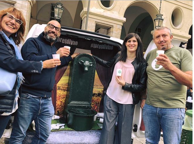 Simpatica la collaborazione tra Eataly Lingotto e l’associazione I Love Toret: una fontana a forma di toret ( che nel dialetto piemontese vuol dire toretto) è stata portata in giro in città su un veicolo elettrico nelle vie del centro storico dispensando gratis dell’eccellente Barbera Fontanafredda.