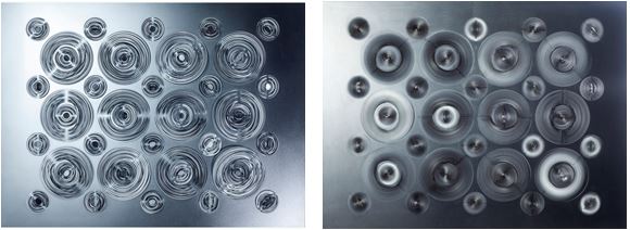La funzione d’onda (nelle opere in alto) che descrive il processo quantistico è un simbolo: un simbolo di reale corrispondenza tra il microcosmo e il macrocosmo a cui apparteniamo.