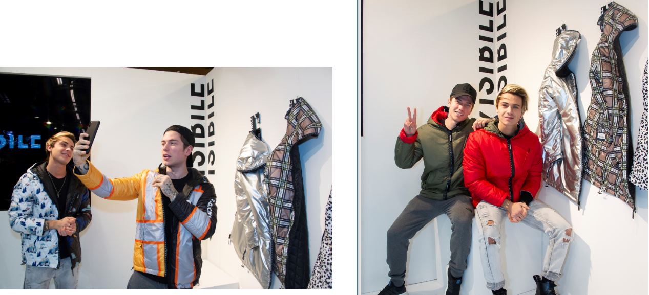 BENJI E FEDE ,il duo pop che ha in programma di concludere un importante tour italiano da idoli delle teen-ager, è stato ospite dello stand DIVISIBILE per la collezione A/I 19 per la prima volta a Pitti Uomo 95. Il duo è rientrato nella top 10 dei dischi più venduti in Italia nel 2018. Il brand DIVISIBILE, invece, è considerato uno degli alfieri della moda eco-sostenibile con collezioni di giubbini unisex dal minimo impatto ambientale.