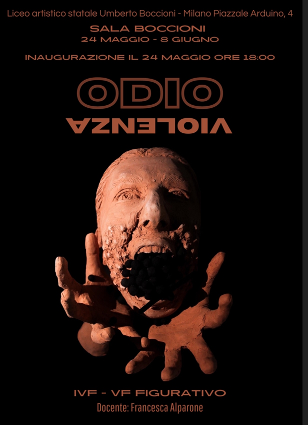 Ospitata nella “Sala Boccioni”, curata dalla prof.ssa Francesca Alparone, la mostra “Odio – Violenza”, è un’esplorazione tematica attraverso le arti plastiche, realizzata con le studentesse e gli studenti delle classi 4^ F e 5^ F. Il tema coinvolge qualsiasi tipo di violenza coniugata a tutto tondo, non solo le urgenze legate alle guerre o ai femminicidi. I ragazzi si sono ascoltati nel profondo, estrapolando i più segreti timori, e traghettandoli nello loro creazioni, in un disagio che racconta un’epoca toccante.