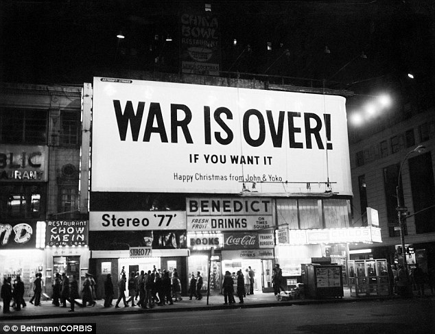 Esattamente 50 anni fa, nel 1969, John Lennon e Yoko Ono diedero vita ad una campagna di affissioni pubblicitarie in molte città, da Parigi a New York, da Atene a Washington, con un messaggio chiaro, “WAR IS OVER! If You Want It – Happy Christmas From John and Yoko” (LA GUERRA È FINITA! Se lo volete – Buon Natale da John & Yoko), poi imprigionato nel leggendario ritornello natalizio di “Happy Xmas”.