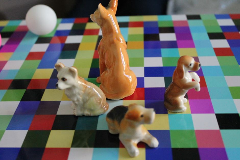 Mi attraggono le statuine che devono esprimere bellezza, mi colpiscono in ceramica perché sono piene di riflessi e la varietà dei personaggi, lontani dal classicismo, è altissima. Non mi piacciono sicuramente quelle moderne, le cerco dal Settecento al primo Novecento. Ognuna poi ha un titolo specifico, e fanno parte di vari cicli che raccontano molto di me, i miei rimpianti ma anche le mie ambizioni. Ho realizzato un ciclo, “thank you Mr D” dedicato a Darwin che porta gli animali a diversificarsi. Le statuine fotografate sono infatti orsi bianchi e pappagalli.