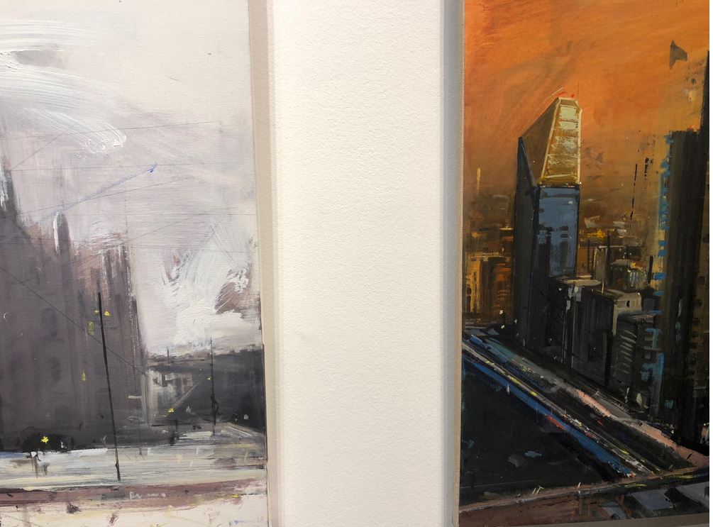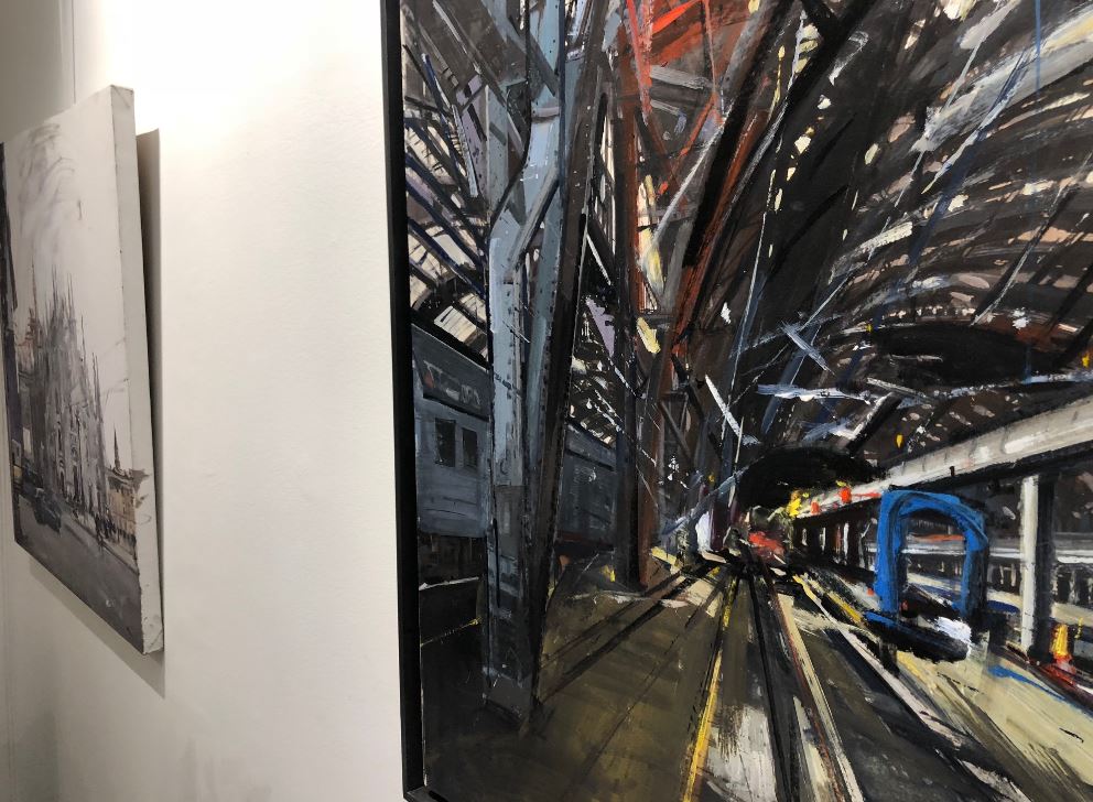 Se è questo quello che offre, un tempo le fabbriche, oggi lo skyline della città del design e innovazione, che ben vengano artisti che la ritraggono per come è oggi, questa Milano faro d’Italia, così distante dallo sconquasso sociale ed economico del resto d’Italia. Ma eppur italiana, viene da pensare ammirando questi quadri che ripensano il concetto del nuovo. Inteso come innovazione (la stazione centrale lo è stato) e di futuribile (Porta Nuova chissà cosa potrà diventare).