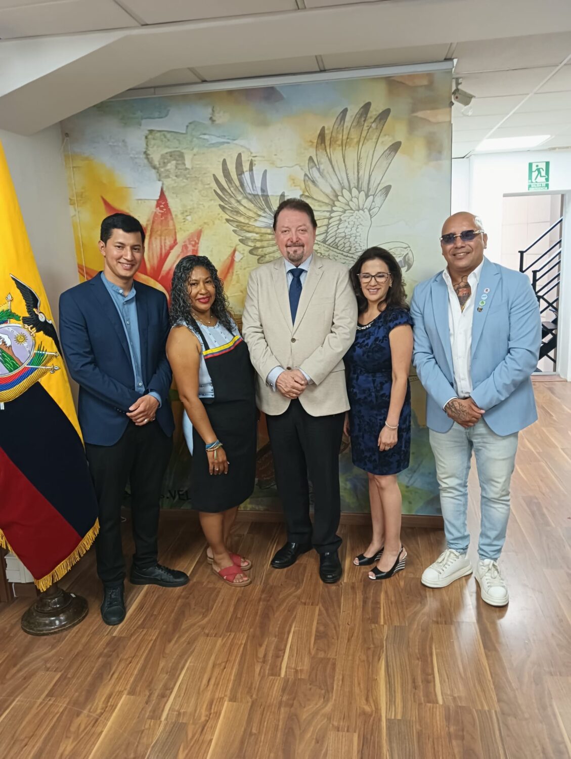 Con una cerimonia intensa e partecipata, il murale Frammenti di Identità dell’artista ecuadoriano Boris Veliz è stato ufficialmente dichiarato patrimonio culturale del Consolato Generale dell’Ecuador a Barcellona. L’opera, installata in una delle pareti interne dell’edificio consolare, rappresenta un tributo visivo alla memoria migrante e un segno tangibile del legame tra identità, appartenenza e territorio.