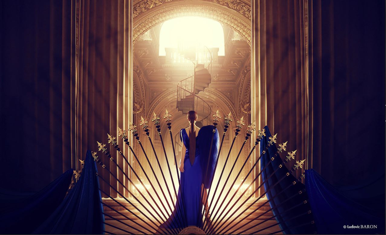 Prima ho un’idea, un argomento che mi interessa e poi rifletto sul contorno che corrisponda a questo progetto. Disegno, faccio ricerche e faccio un viaggio per scattare fotografie di ciò che mi interessa per la mia creazione. Poi torno a Parigi e organizzo un servizio fotografico con modelli. Collaboro con il mio team artistico di truccatori, parrucchieri, stilisti e metto in scena i miei personaggi. Alla fine metto assieme tutte le mie foto in digitale per creare una foto singola. Il processo può richiedere tra 1 settimana e 2 anni di lavoro.