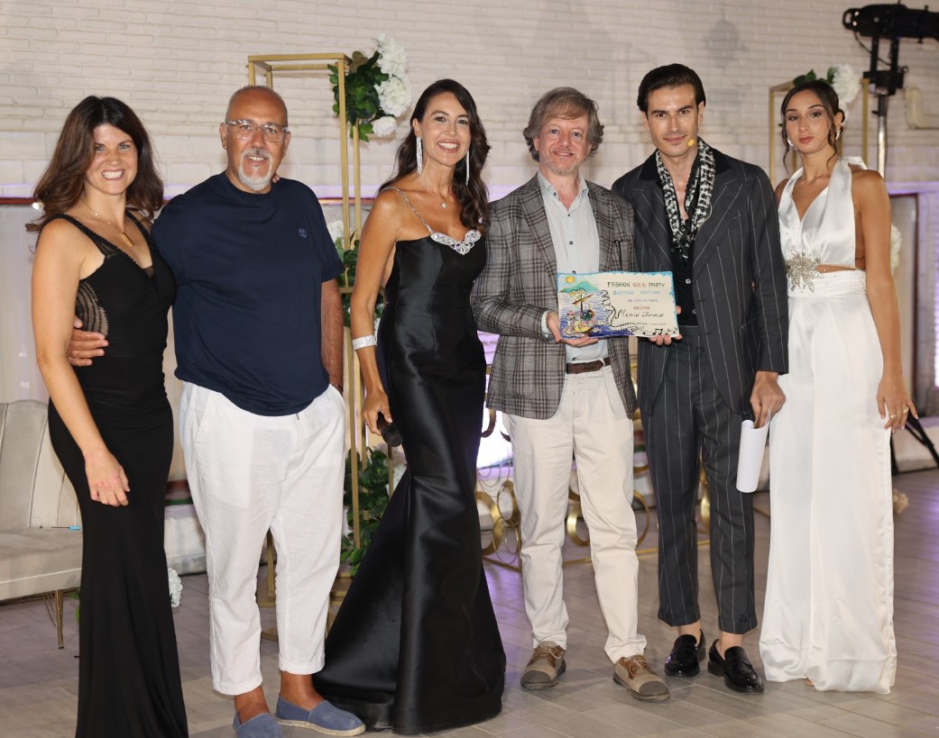 Nelle foto in alto: Vito Amato e Daniela Ioia (con Antimo Casertano) durante la premiazione al Fashion Gold Party 2025 Summer edition.