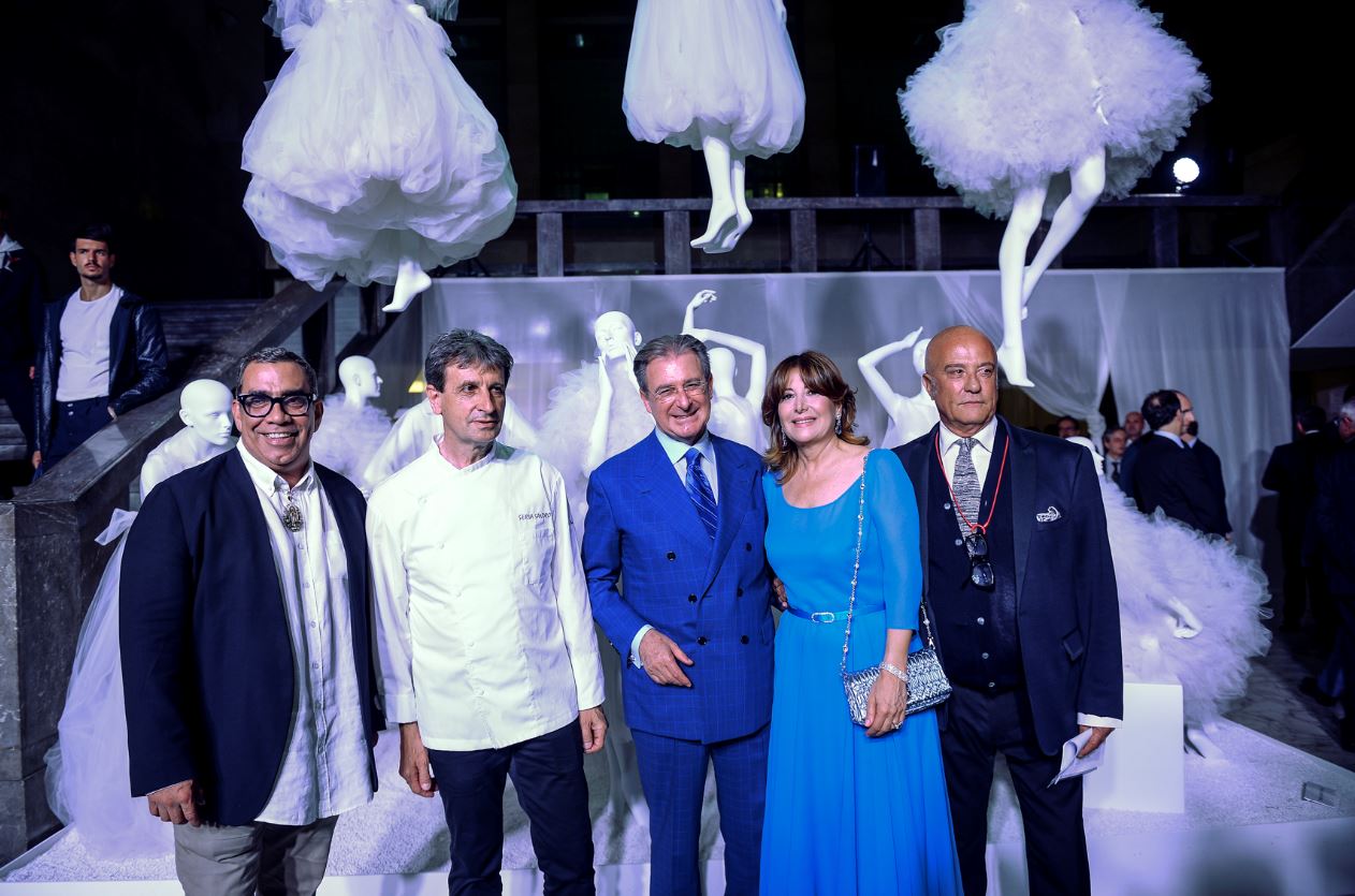 Entrando nel rigoroso e lineare palazzo del Salone delle Fontane, dall’architettura tipicamente razionalista degli anni 30 del quartiere EUR di Roma, si respira tutto ciò che il “Club della creatività” vuole esprimere: un ambiente ascetico, una nuvola bianca creata dagli abiti esposti, vere opere d’arte, che ondeggiavano sospesi nel vuoto o che sembravano ri-nascere dalla terra, sapientemente esposti all’ingresso dell’edificio.