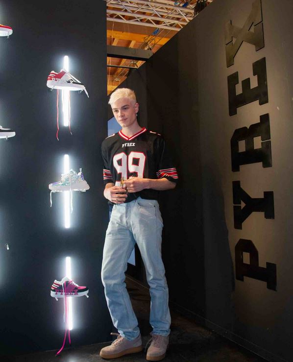 Marco Boriello e il semifinalista di Amici Biondo, ospiti del brand Pyrex per la collezione A/I 18 durante la settimana dello stile che ha aperto la seconda tornata di sfilate 2018.