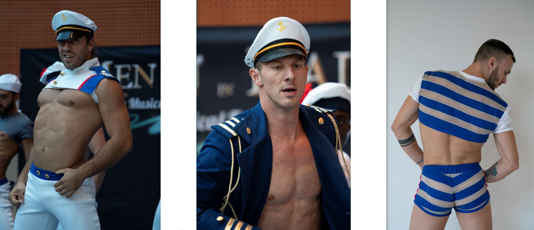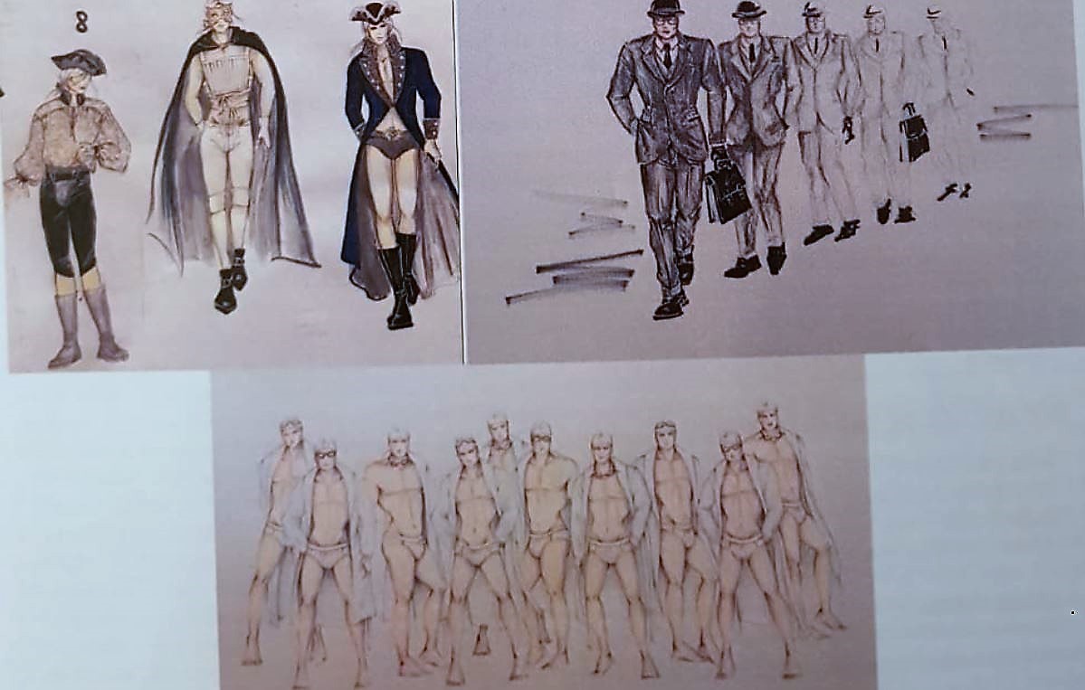 Intanto se vuoi confrontarti a teatro con il mondo fashion, devi levare l’ovvietà. Poi, trattandosi di uomini, ho tenuto bene in mente il confine tra volgarità e bellezza. Se hai gli uomini in ambito strip o portatori di una sensualità efficace dal punto di vista della comunicazione del corpo, bisogna fare ricerca approfondita sui mood. Quindi, i filoni erano déjà vu, come marinai, Casanova, e da lì inizi a pensare, a scontrarti con il budget. La produzione è stata molto collaborativa e volevano una persona lontana dal tema in oggetto. E sono subentrata io da Roma e mi sono accordata per l’ideazione di costumi che potessero rispecchiare l’idea di Bill Goodson, con cui lavoro da anni.