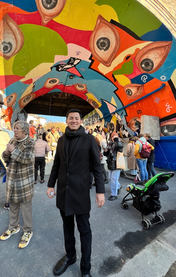 Boris Veliz, artista ecuadoriano formato a Milano, laureato in Scenografia per il Cinema e la Televisione, ha curato il murales che segue la forma dell’arcata sotto i binari del rilevato ferroviario. Un’opera di peculiare realizzazione che ha richiesto giorni di intenso lavoro.