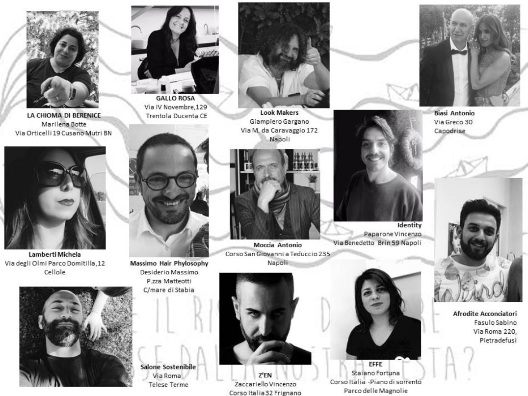 I 12 parrucchieri campani che hanno voluto unirsi in gruppo ed amplificare quello che era stato il messaggio del brand Davines con la campagna TuteliAMO il Mare li vedete in questa grafica qui sotto. Grande mobilitazione invece è stata organizzata domenica 10 Giugno 2018 un’iniziativa nata per sensibilizzare le persone a sentirsi responsabili della Bellezza che ci circonda. La Bellezza è una nostra responsabilità.