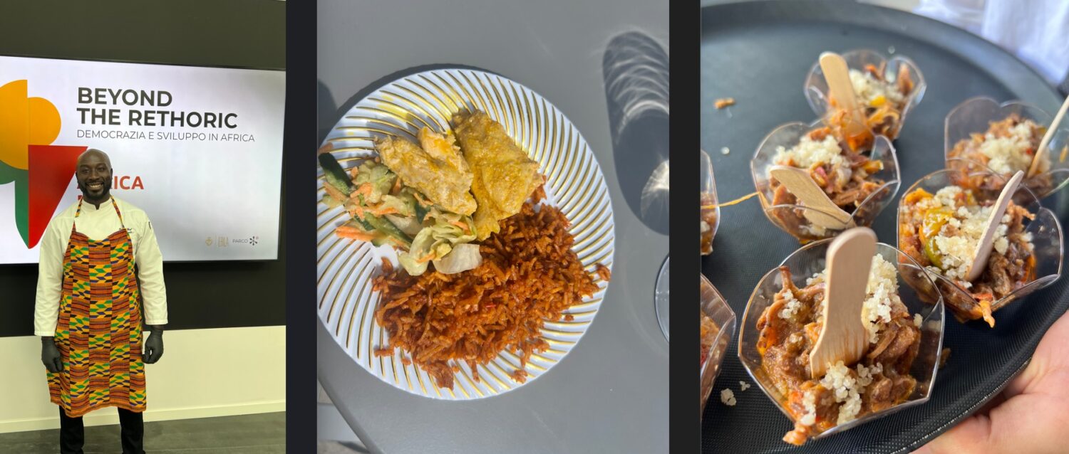 Momenti conviviali sono stati alternati alla degustazione di cibi africani a cura dello chef italo-africano Ernesto Kouassi, con il dj set a cura di Dj Kobby e una band di percussionisti.