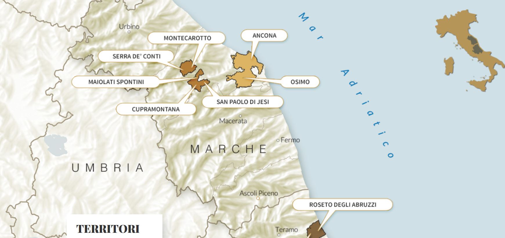La storia di Umani Ronchi è una storia di vite, viti, di terre e valori. Di stagioni che si rinnovano, di vendemmie che ogni anno regalano frutti diversi e unici, di vini che nascono e viaggiano per approdare sulle tavole di tutto il mondo. Una storia che inizia più di cinquanta anni fa, a Cupramontana, dove pulsa il cuore del Verdicchio classico, per poi esplorare numerose altre aree della preziosa terra dell’Adriatico. Oggi Umani Ronchi è l’azienda di vini di proprietà della famiglia Bianchi-Bernetti, che dal 1957 produce con cura e artigianalità, vini di grande qualità, sapendo valorizzare quei vitigni che trovano la loro naturale e migliore espressione nelle terre delle Marche e dell’Abruzzo: il Verdicchio e il Montepulciano. Sono distribuiti su tre territori.