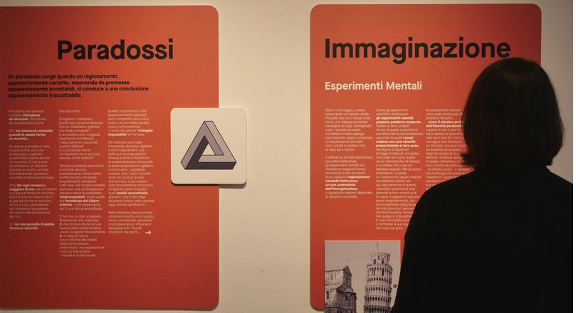 Di qui il percorso che le prime stanze del Museo propongono. Nella prima stanza, che ha un carattere più generale e un più accentuato taglio teorico, la riflessione si lega all’esperienza perché il visitatore è invitato ad affiancare alla lettura di testi sollecitazioni di carattere estetico e visivo. È in questa luce che vanno lette le immagini di labirinti e i giochi. Nella seconda stanza la dimensione esperienziale assume una piega più interattiva, e accanto ai testi vi sono vere e proprie situazioni sperimentali, giochi e letture che chiedono una risposta dinamica da parte del pubblico.