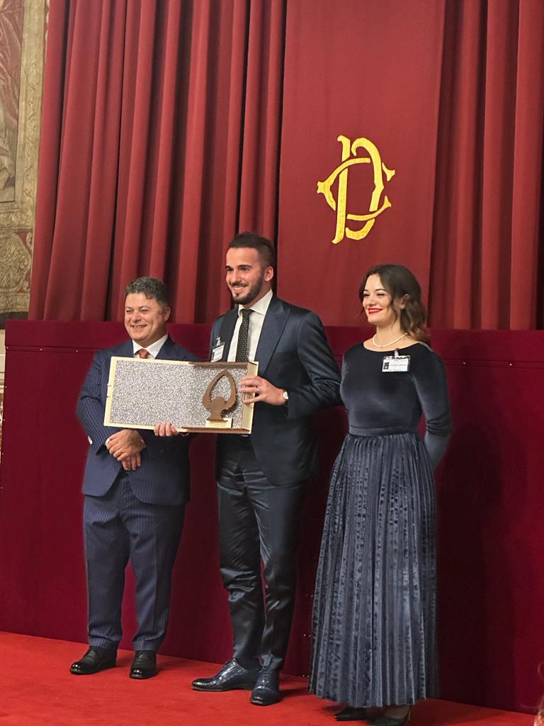 Presso la suggestiva Sala della Regina di Palazzo Montecitorio, alla presenza delle Autorità e del vice presidente Camera Giorgio Mule’, Daniele Bartocci ha ritirato la prestigiosa “Menzione d’Onore 100 Eccellenze Italiane”. Un premio che gratifica i sacrifici e i successi giovane marchigiano, nato a Jesi e da anni residente a Loreto, impegnato sul fronte sviluppo business agroalimentare, con numerosi premi vinti lungo la penisola. La cerimonia di ieri sera a Roma, condotta dalla giornalista Alda D’Eusanio, ha voluto valorizzare le storie di cento protagonisti del Bel Paese che si sono contraddistinti nelle varie categorie, lavorative, imprenditoriali, spettacolo, sostenibilità, in virtù del prezioso contributo recato da ciascuno di essi alla crescita dell’Italia. Patrocinano l’evento, organizzato dall’associazione Liber in collaborazione con la casa editrice Rde e il contributo di vari partner, la Presidenza del Consiglio dei Ministri, ben undici Ministeri, l’Anci, la Guardia Costiera e il Corpo Nazionale dei Vigili del Fuoco. Le 100 storie selezionate saranno pubblicate in un apposito volume a inizio 2024. “Non mi aspettavo questo bel riconoscimento che difficilmente dimenticherò. Uno stimolo in più per continuare con umiltà la mia attività con ancor più entusiasmo o e determinazione”, ha commentato Bartocci. Tra i 100 personaggi illustri premiati nella scorsa edizione (la n.8) del Premio 100 Eccellenze Italiane, nelle differenti sezioni, la campionessa Valentina Vezzali, Diletta Leotta, Paolo Bonolis (in foto con Bartocci e mogliea ed Elisabetta Franchi.