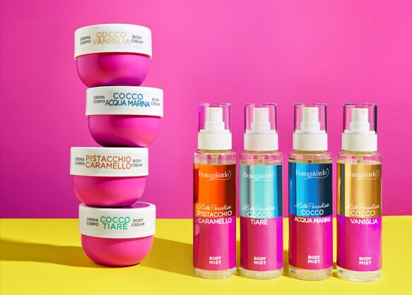 La collezione è composta da 4 Creme Corpo e 4 Acque Body Mist, perfette per rigenerare la pelle assetata dall’alta temperatura, donandole quella sensazione di freschezza e luminosità esaltata da fragranze golose e rigeneranti: un mix di ingredienti che predispongono al buonumore e alla gioia di assaporare tutta la bellezza della stagione.