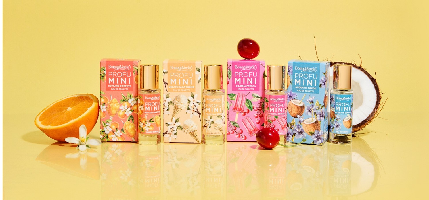 I nuovi ProfuMINI, Eau de Toilette nei pratici formati da 10 ml da portare sempre con sé, si ispirano alle fragranze dell’estate italiana e la declinano in chiave gourmand. Originali e super portabili, sono ideali per rivivere situazioni tipicamente estive e momenti tutti da ”gustare” e rappresentano il piacere di sentirsi avvolti dalla dolcezza e dall’energia di questa stagione.