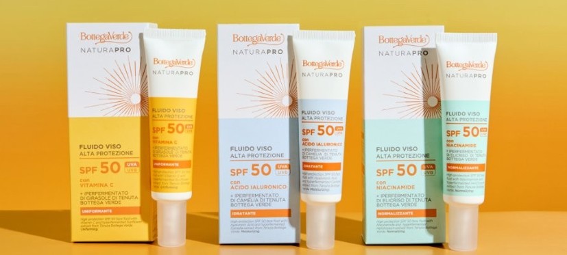 I FLUIDI SOLARI VISO SPF 50 sono disponibili in tre diverse formulazioni che si adattano alle esigenze di ogni tipo di pelle: Niacinamide ed Elicriso ad azione normalizzante; Acido Ialuronico e Camelia, Idratante; Vitamina C e Girasole, uniformante.