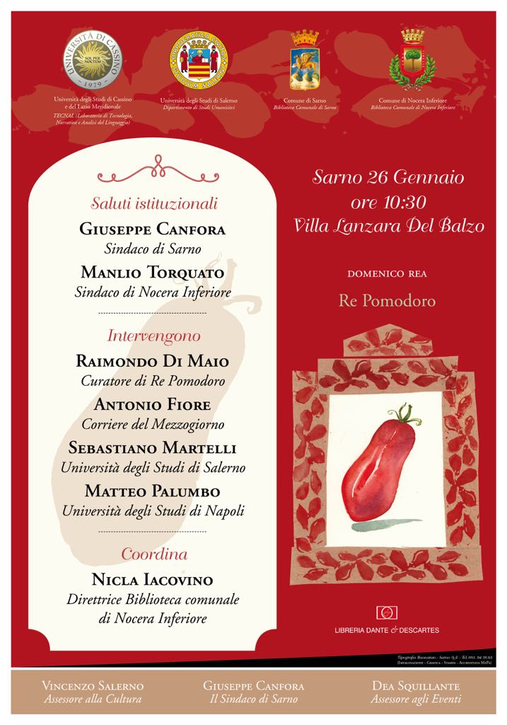 Domenico Rea (1921 –1994), cresciuto a Nocera Inferiore, è tra i massimi scrittori del Novecento, vincitore del Premio Strega con “Ninfa plebea” (1992). Re pomodoro narra lo «straordinario nuovo» e lo «splendido antico» di quel “regno del pomodoro” in una maniera più duratura e più aderente di una datata inchiesta o una superata cronaca.
