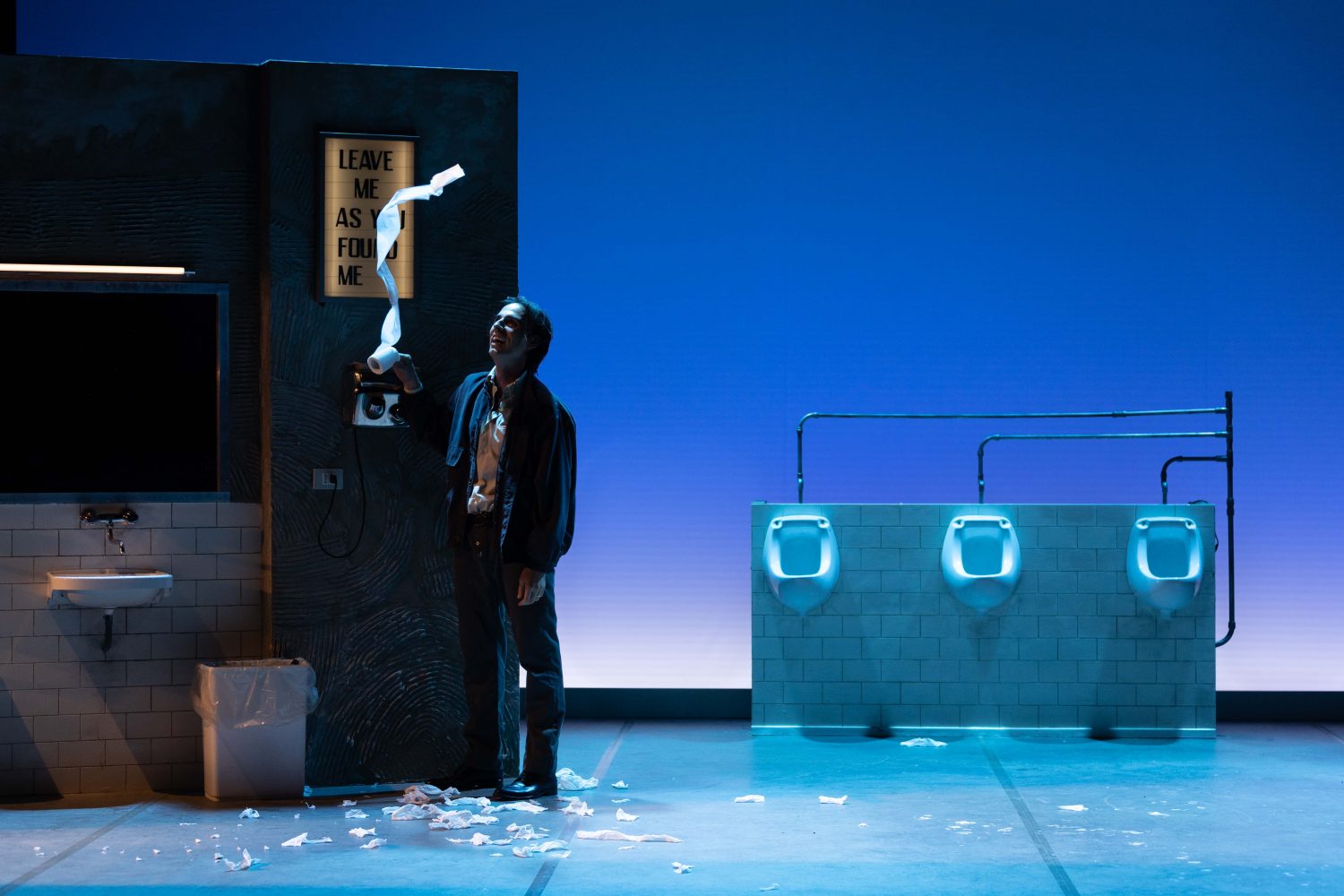 Nell’attenta istituzione culturale, il gruppo – guidato dal regista Riccardo Pippa – è residente ed è qui che presenterà anche il suo ultimissimo lavoro Note a margine. Un bagno pubblico in fondo a un corridoio o sotto la piazza di una città: può essere il bagno di un aeroporto, di un club o di una stazione di servizio. Lo attraversa un’umanità variegata e transitoria. È un luogo di passaggio, d’attesa, d’incontro tra sconosciuti, un camerino improvvisato dove fare scongiuri, nascondersi, sfogarsi.