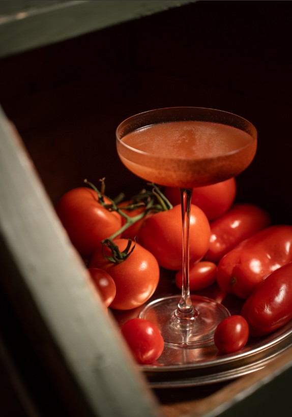Gin, Basilico Salato, Succo di Pomodoro, Limone, Tabasco, Worcestershire, Sale & Pepe