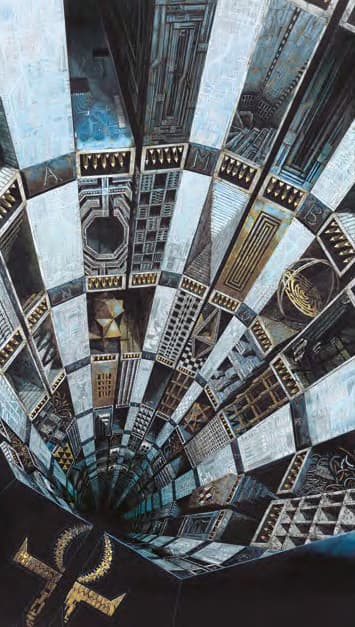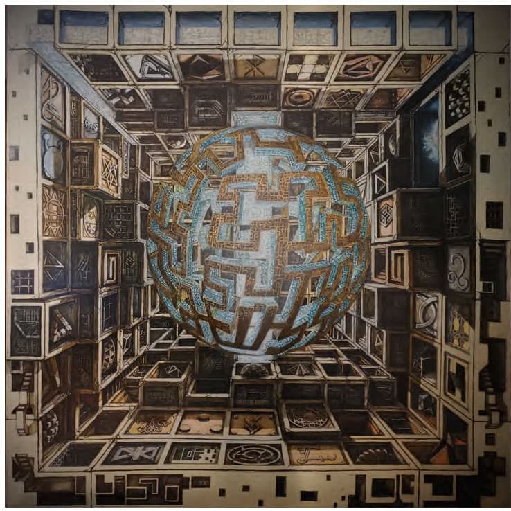 Guardando le tele di Stefania Pinsone, artista sperimentale multi-premiata, il pensiero viene influenzato dalle sue visioni; è la forma che spacca i confini della realtà , ci porta fino all’inizio dell’ Universo. Vedo una visione più complessa dello spazio, una dimensione illusoria dei suoi disegni; realtà che tecnicamente dovrebbero essere estranee al loro spazio figurativo. Le sue opere riportano alla scienza, alla matematica ed alla fisica; apprezzo il suo uso razionale di poliedri, distorsioni geometriche ed interpretazioni originali di concetti appartenenti alla scienza, sovente per ottenere effetti paradossali.
