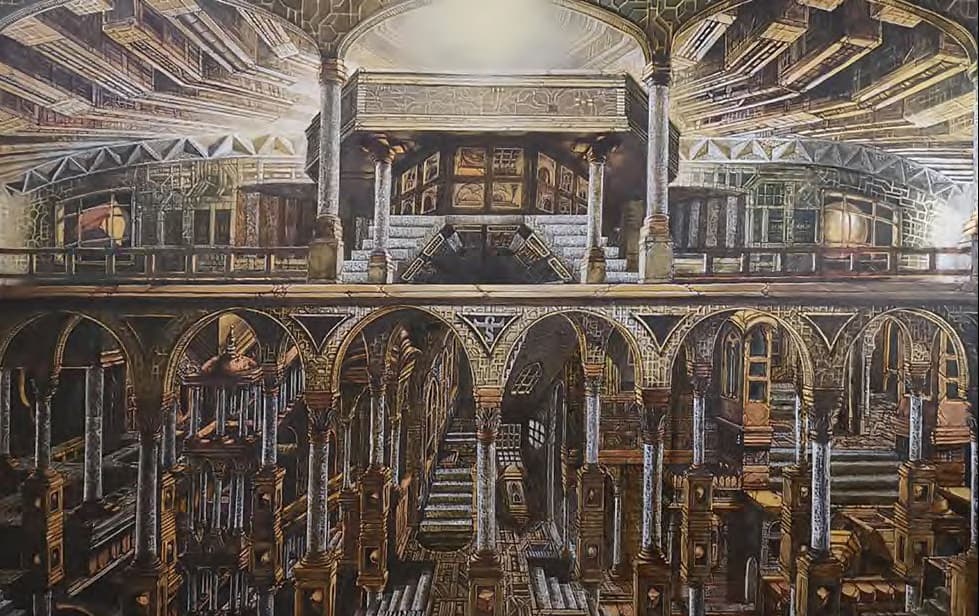 Prospettive infinite di architettura, cerchiamo di tenerci in equilibrio ma stiamo già cadendo, precipitando nella tromba delle scale immaginarie, fluttuando nel vuoto abissale fino a sussultare, come quando si cade in un sogno, e ci risvegliamo di soprassalto col cuore che scalpita.