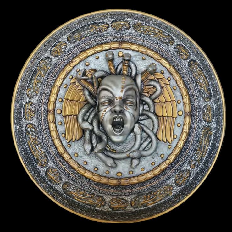 GOLDEN ISOLATIONISM – metallic pigments on golden aluminium 100 x 100 cm 2019 DREAM MACHINE Metallic and phosphorescent pigments on golden aluminium, 100 x 100 cm 2020 AMBIENT OF CO§n ECTIVITY (THE ABYSS) Metallic pigments on silver aluminium 127 x 72 cm 2021 DEATH OF MYTH 3-D printed sculpture, made by reverse enginering from a 2-D model developed in 2016 (below). Covered with gold and silver leaf. Ø 60 cm 2021 CLOSED CIRCUIT Acrylic, silver, gold, bronze, phosporescent pigments on silver aluminium, 40 x 160, 2020 THE CALLING Acrylic metallic pigments on golden aluminum 80 x 120 cm 2020