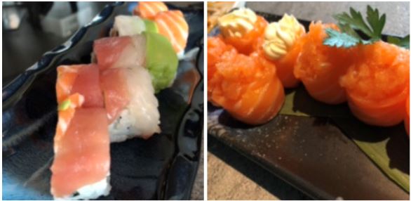Tra le specialità irrinunciabili, Gunkan Amaebi (riso avvolti con salmone e guarniti con tartare di gambero crudo), Futomaki fritto (salmone, avocado, philadelphia e salsa teriyaki), Chirashi Sake Avocado (salmone e avocado)