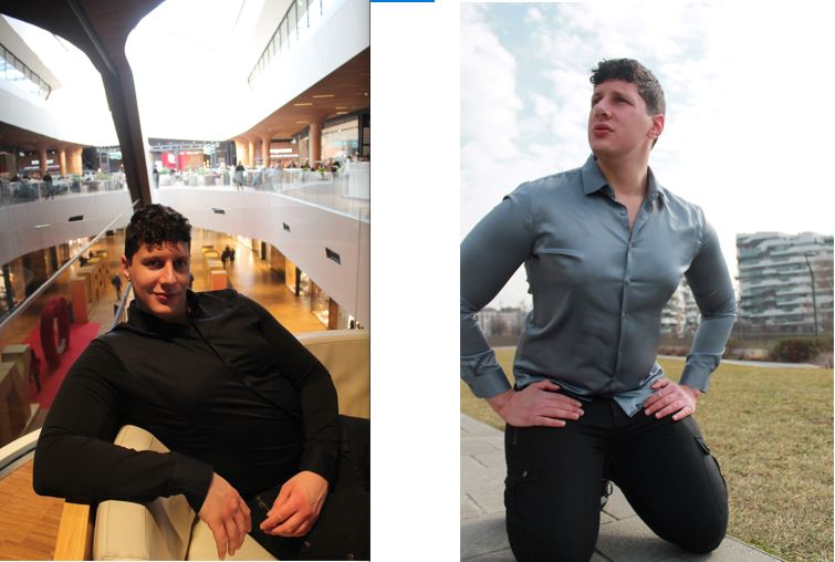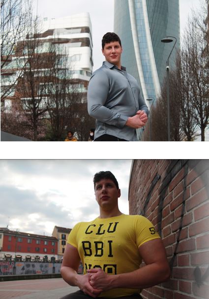 “Mi sono avvicinato alla passione per la ginnastica – ci racconta in visita a Milano dove sono state scattate queste foto – facendo 15 anni di sport, basket, atletica, rugby, ciclismo sia su strada che mountain bike. E dopo aver esplorato queste passioni, mi sono dedicato al culturismo da quando avevo 18 anni. Finché per migliorare negli ultimi due anni e mezzo ho preso un personal trainer perché ho individuato tanto da scoprire e migliorare su me stesso attraverso questa disciplina”.
