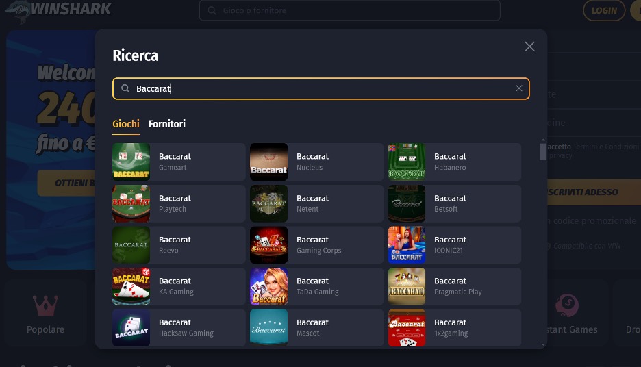 Winshark combina innovazione e affidabilità, rendendolo una scelta perfetta per gli appassionati di Baccarat. La piattaforma offre numerose varianti del gioco, con croupier live e funzionalità interattive. Grazie ai bonus ricorrenti e al cashback sulle perdite, Winshark è una piattaforma che si adatta sia ai principianti che ai giocatori più esperti.