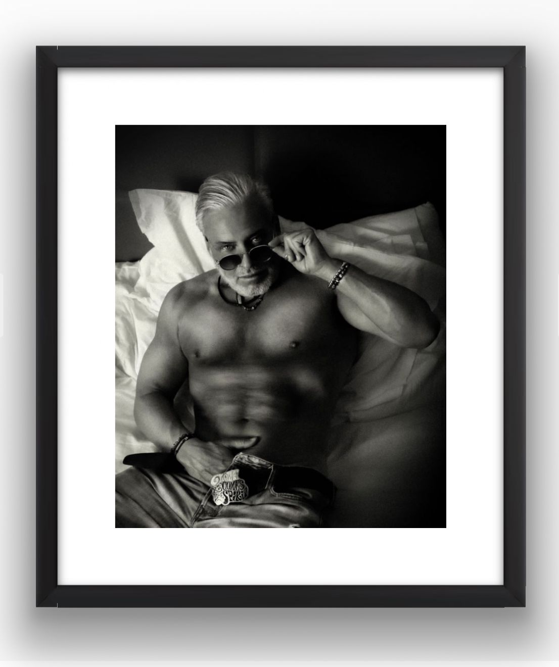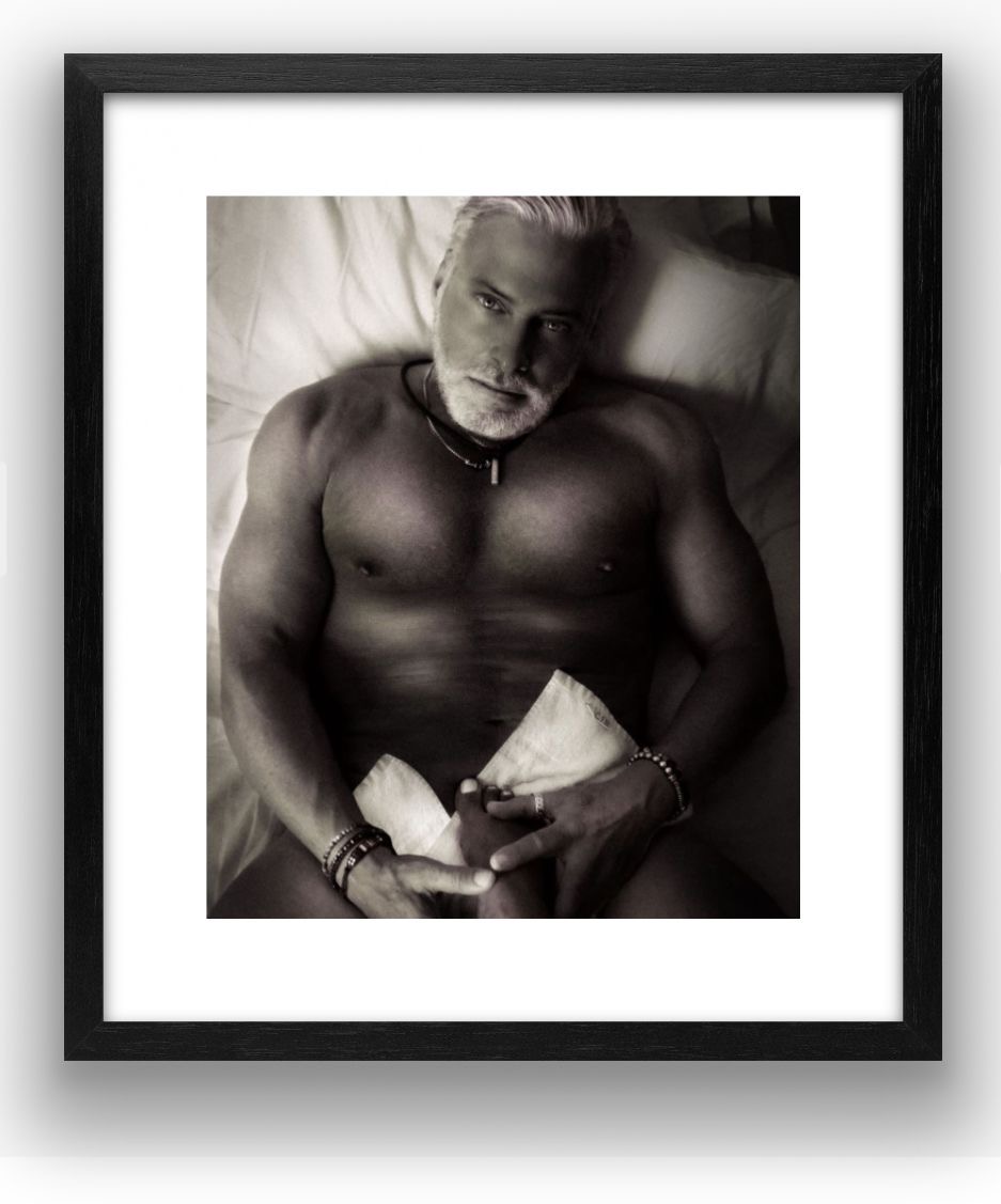 Una delle opere più iconiche della serie mostra Valentin circondato da un mare di piume, che si dispiegano come un mantello di leggerezza e trasformazione. Qui, il suo occhio fotografico rivela una profonda comprensione dei contrasti e della simbologia. Le piume, in netto contrasto con il suo corpo muscoloso, aggiungono all’immagine una dimensione quasi spirituale, che parla della natura complessa dell’essere umano. Da un punto di vista fotografico, questa immagine è un capolavoro di composizione e texture. Valentin utilizza le piume per creare un equilibrio tra il maschile e il femminile, il potente e il fragile, e il risultato è un’immagine che trascende il fisico e invita a una riflessione più profonda sull’identità e la comprensione di sé.